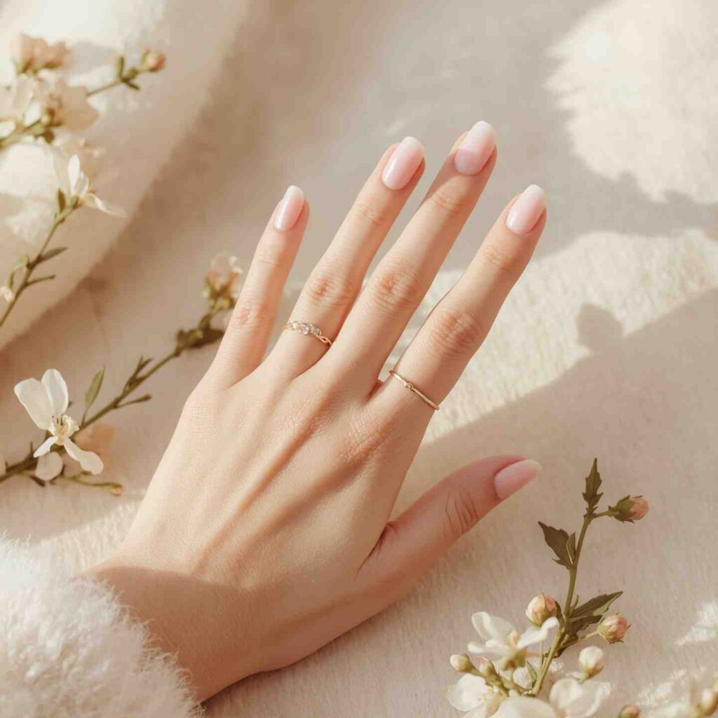 - Base Coat: Apply a sheer nude or soft pink base to keep it classic.