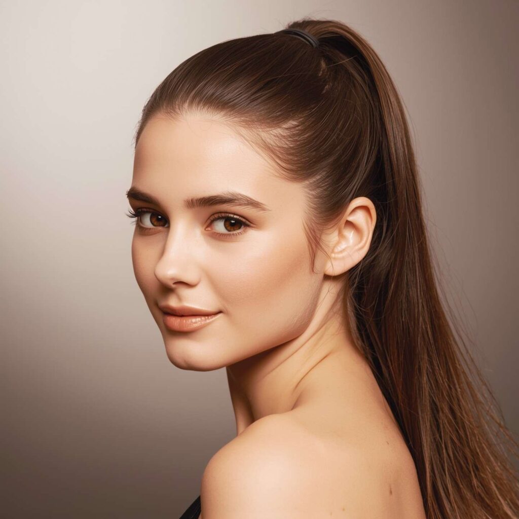 Last but not least, the sleek and straight variation is all about simplicity with impact. Start with flat-ironed, glossy hair and then pull the top half into a ponytail or knot. This hairstyle feels professional, neat, and effortlessly chic. It’s a great choice for corporate environments, formal occasions, or even photoshoots. The smooth finish ensures you look polished from every angle.